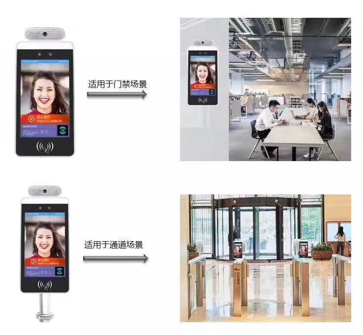 智能測溫人臉識別一體機可以人員進出單位考勤業務。考勤人員在進場、離場時,按照設備使用規則,通過識別設備,在設備上進行人臉打卡操作,并配合對閘機或門禁設備的開門控制,實現對單位人員管理。